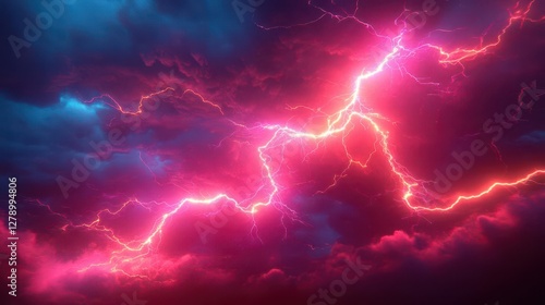 Vivid 3D Rendered Lightning Strike Element with Intense Colored Sparks and Dynamic Energy for Futuristic Visual Effects