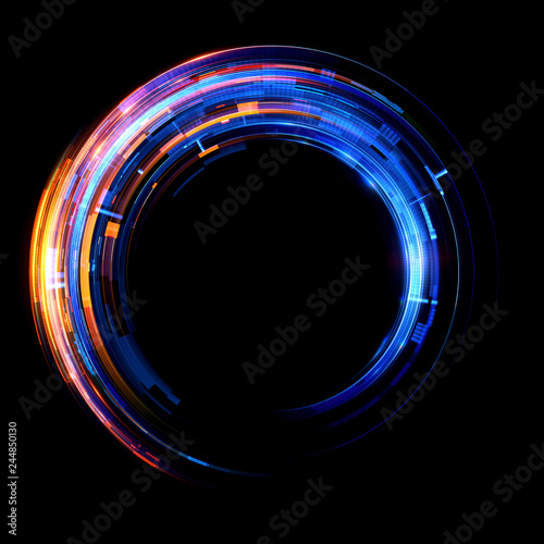 Vivid abstract background. Beautiful design of rotation frame. .Mystical portal. Bright sphere lens. Rotating lines. Glow ring. .Magic neon ball. Led blurred swirl. Spiral glint lines.