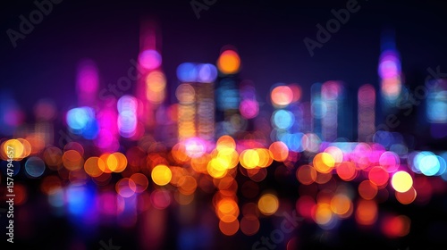 Vivid abstract background of colorful bokeh lights with a blurred city night atmosphere.