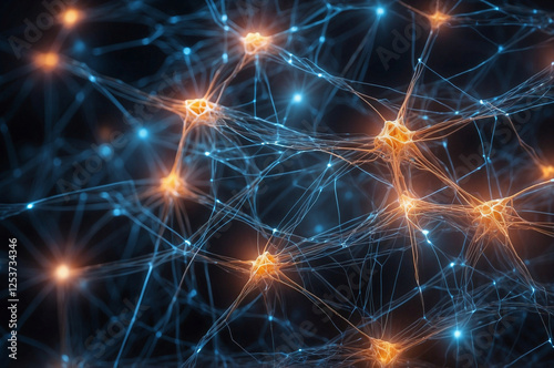 Vivid Abstract Illustration of Energy Flow in a Glowing Blue Neural Network with Dynamic Interconnected Pathways