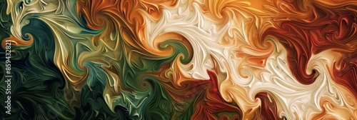 Vivid abstract swirls of green, orange, and white tones, representing a dynamic and vibrant texture.