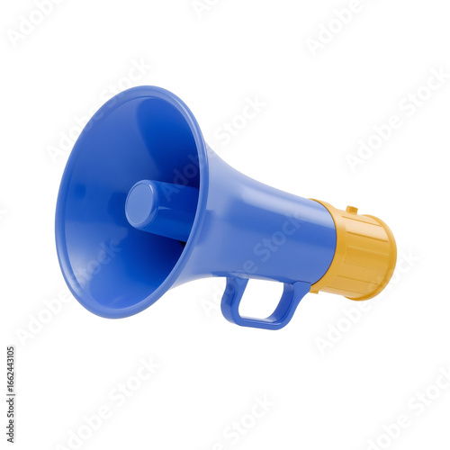 Vivid blue and yellow megaphone icon floating against an infinite space showcasing sound