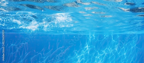 Vivid blue water glistens in the swimming pool creating a serene backdrop for a copy space image
