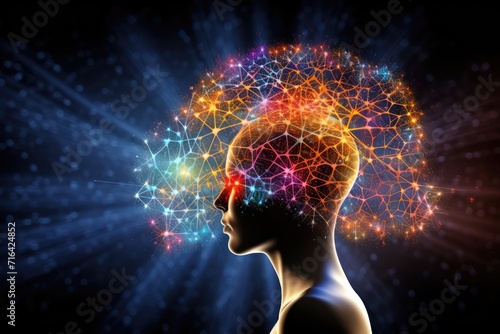 Vivid creative ideation - brain radiant symphony of ingenious imagery, wit neural graphics, psychedelic visualization. Chromatic neurons dance in witty, neural neon tapestry of imaginative thinking