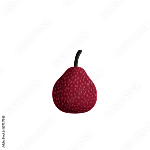 Vivid Crimson Pear: A detailed, top-down view showcases a ripe pear, its deep crimson hue and unique texture creating an elegant, food-focused image.