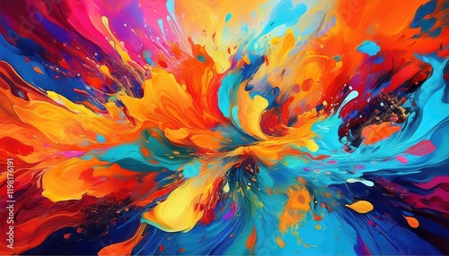 Vivid Explosion of Colors Abstract Artwork Showcasing Striking Paint Splashes and Energy, Captured on January st, .