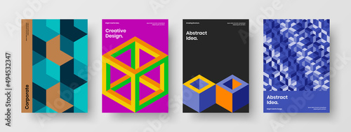 Vivid geometric shapes handbill template composition. Colorful journal cover design vector layout set.