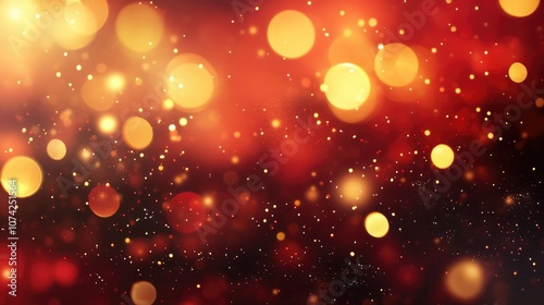 Vivid holiday bokeh red festive backdrop adorned with shimmering lights in gold and black