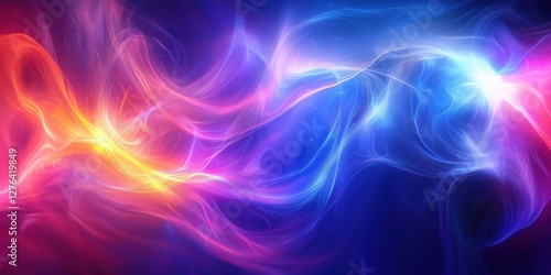 Vivid illuminated smoke on a dark surface. Realistic close-up photo showcasing abstract vapor texture. Magical atmospheric wallpaper design.