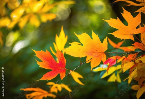 vivid leaves transitioning through color spectrum lush forest setting, autumn, foliage, colors, shades, vibrant, red, yellow, orange, landscape