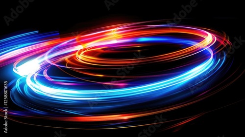 Vivid light swirls on dark background - abstract motion and energy concept for creative design