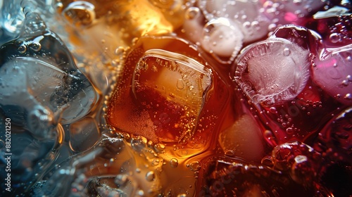 Vivid Macro Composition of Refreshing Drinks in Melting Ice, Textured by Natural Light