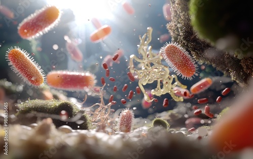 Vivid microbiome, colorful bacteria in the human body, diversity of microorganisms that impact health, immunity, and various bodily functions in the intricate human ecosystem.