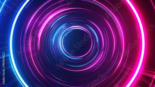Vivid neon circular abstract background with glowing rings, ideal for modern design