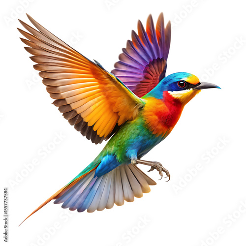 Vivid Rainbow Bee Eater Bird Mid Flight isolated on a transparent background flying wings spread