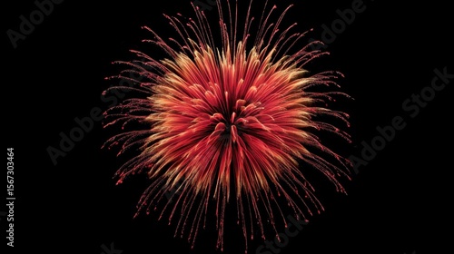 Vivid red and gold firework bloom with radiant, thin streaks elegantly against clean black.