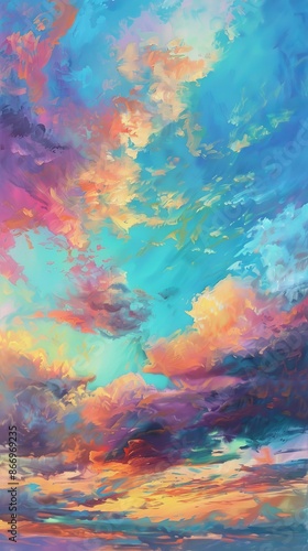 Vivid sunset with colorful clouds, digital painting. Abstract sky art concept