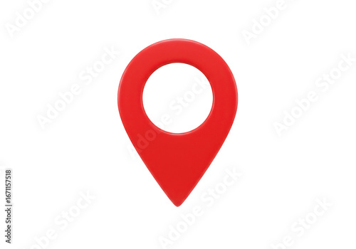 Vivid three-dimensional red location marker icon, navigation and GPS positioning symbol for digital maps and travel applications isolated on white background