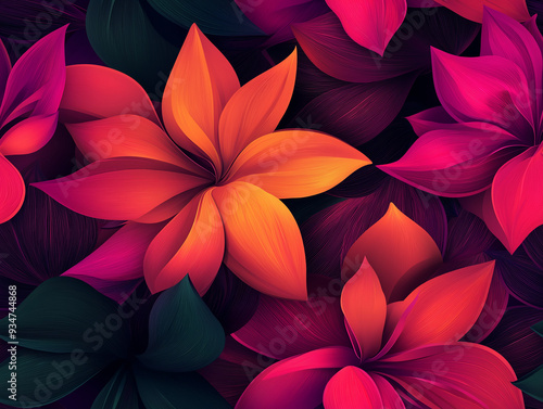 Vivid, warm-colored flowers with smooth gradients in a repeating pattern. This bold design is perfect for vibrant projects that need an energetic and lively floral element.