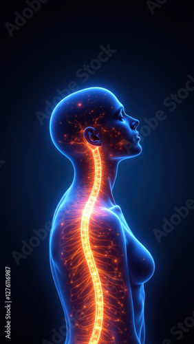 VNS - Vagus Nerve Stimulation device, with highlighted internal structure and nerve pathway for educational purposes.