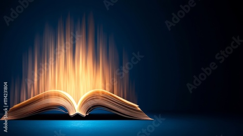 voice and tone to recording conceptual. An open book with glowing lights emanating from its pages.