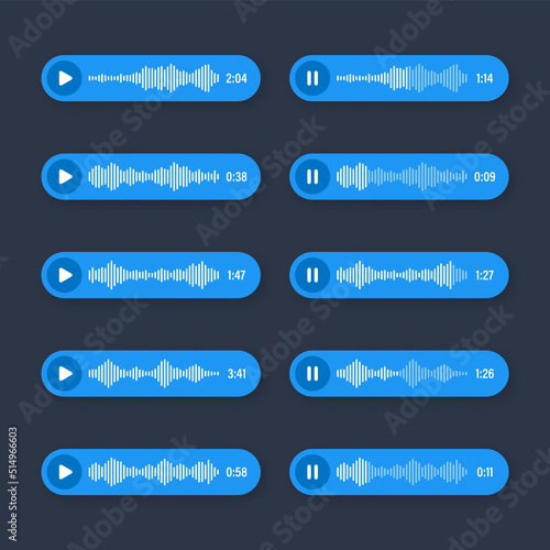 Voice, audio message, speech bubble. SMS text frame. Social media chat or messaging app conversation. Voice assistant, recorder. Sound wave pattern. Dark mode. Vector illustration