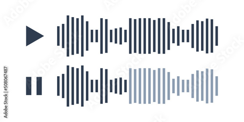 Voice message waveform with play and pause icon. Sound record conversation element. Audio speech sms.
