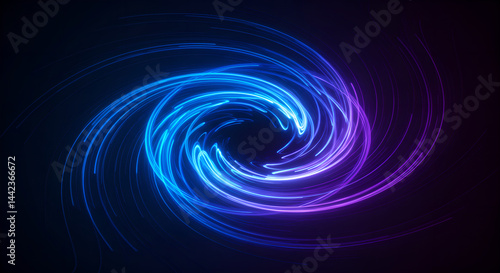 Vortex of swirling blue and purple energy lines forming a circular shape, concept of dynamic motion and futuristic technology, abstract digital design graphic element light effect for photoshop.