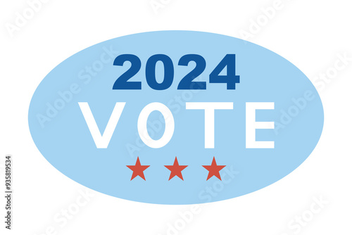 Vote 2024. Blue oval with the words vote 2024 and red stars. Element for election themed design. Isolated vector illustration.