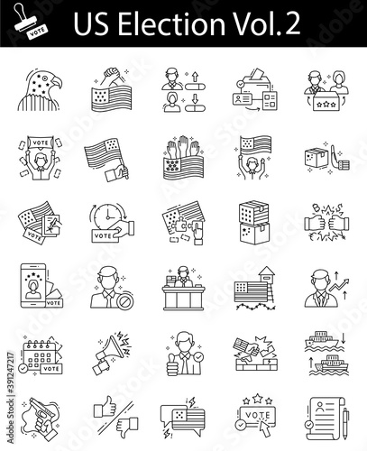 Voting and Polling Sign, Presidential Election vector Icons set, United States Post elections symbol on white background, Independence Day Design