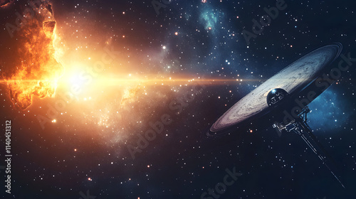 Voyager spacecraft exploring the vastness of space, symbolizing human curiosity and the quest for knowledge beyond our planet.