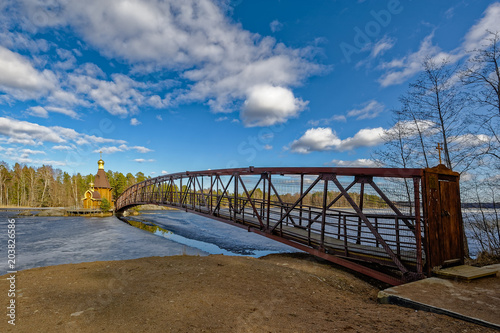 Vuoksa River and the Church of St. Andrew the First-Called. Leningrad region, Russia