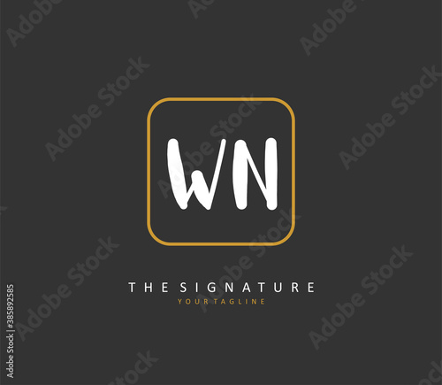 W N WN Initial letter handwriting and signature logo. A concept handwriting initial logo with template element.