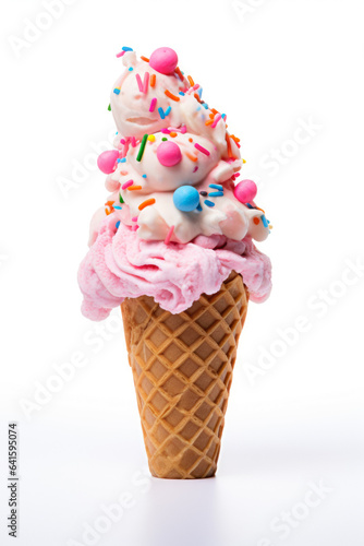 Waffle Cup With Ice Cream And Dope On A White Background Created With The Help Of Artificial Intelligence