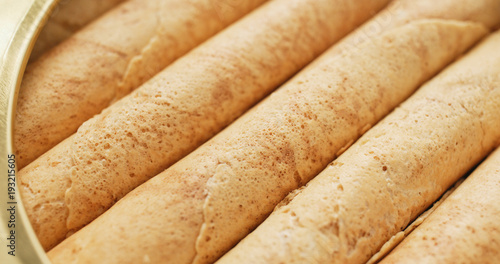 Waffle egg roll inside tin can