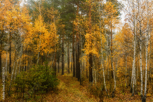 walk in the autumn forest. autumn colors. autumn fogs. melancholy.