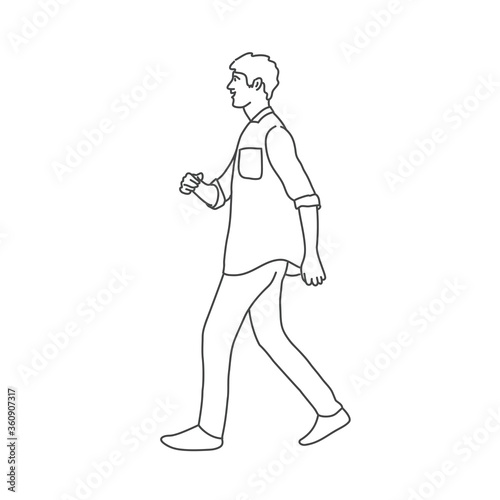 Walking guy. Line drawing vector illustration.