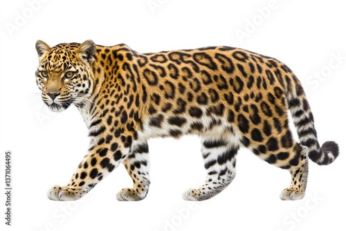 Walking Jaguar on Isolated White Background - Wildlife and Conservation Image