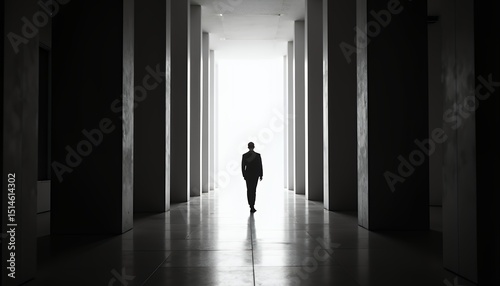 Walking Silhouette in Hallway with Light - Journey, Future, Success