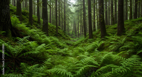 Walking Through Lush Green Forest Ferns and Towering Trees
