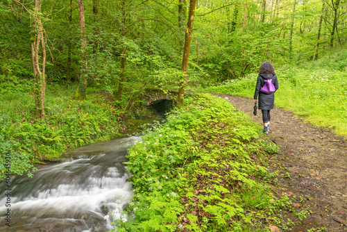 Walking through the woods by the stream