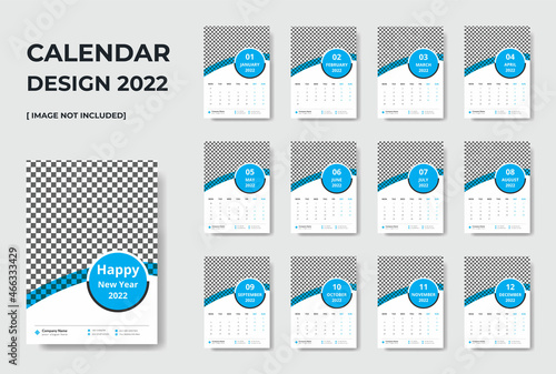 Wall Calendar Design 2022, Wall calendar design template for 2022, simple, clean, Wall calendar 2022, elegant design for 2022,