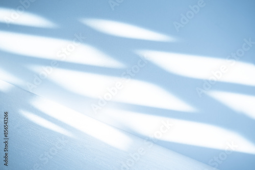 Wall interior background, studio and backdrops show products. with leaf shadow from window color blue and white. background for text insertion and presentation of product