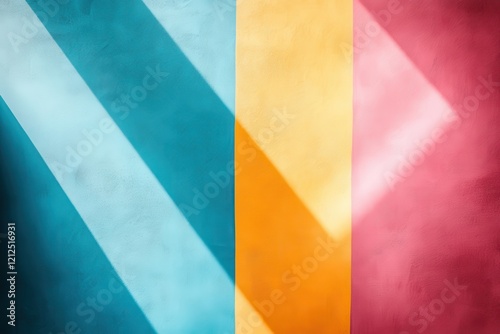 Wall with red yellow and blue stripes in a simple geometric design for background or texture use