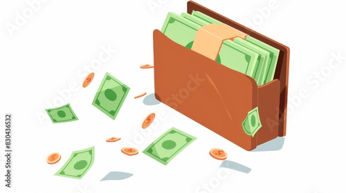 Wallet cash money with dollar sign. Money icon illustration. Cash, payment and financial elements concept.