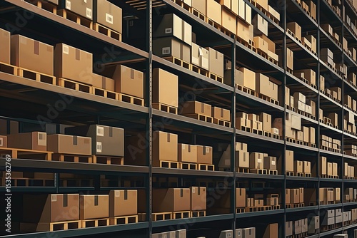 warehouse shelving with cardboard boxes concept delivery
