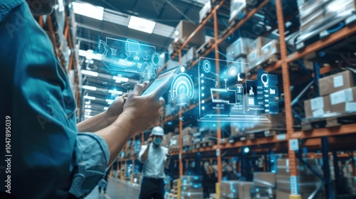 Warehouse Worker Using Smartphone with Augmented Reality for Inventory Management
