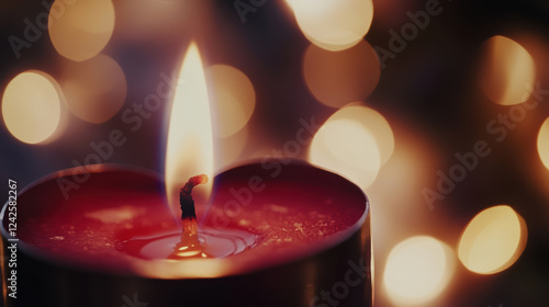 warm candle flame illuminates heart shaped bokeh background, creating cozy and romantic atmosphere. soft glow enhances intimate setting, perfect for relaxation