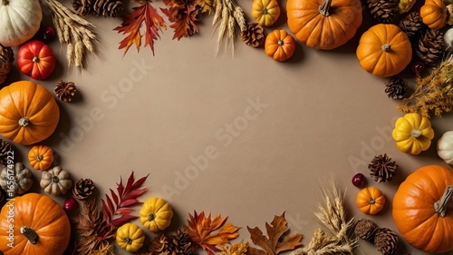Warm Fall Flat Lay with Seasonal Decor and Ample Copy Space