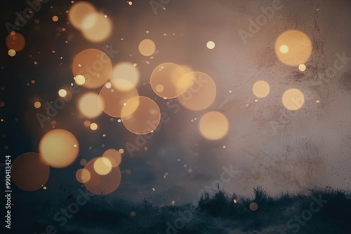 Warm Gold Sparkles with Dreamy Bokeh Effect on Midnight Textured Background